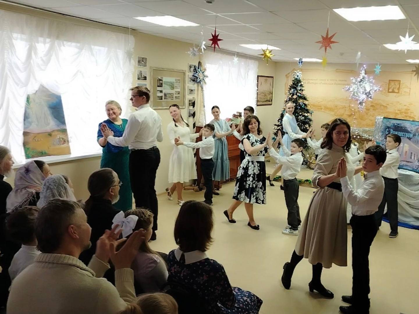 По просьбе организаторов Александр Мартьянов, выпускник ЧУДО ЦДЭР «Созвездие», сделал постановку танца «Рождественский вальс» для мальчиков средней группы с мамами и сёстрами.